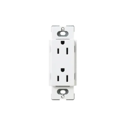 Tomacorriente 125V 15A resistente a manipulaciones, color blanco.