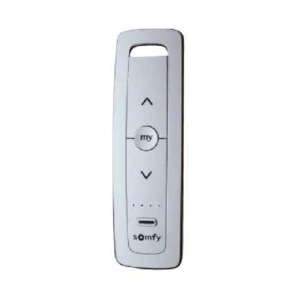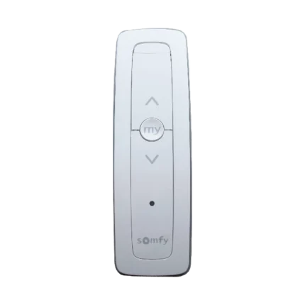 Control remoto 1 canal para motores de persiana Somfy con señal inalámbrica, instrucciones: sube, baja y detener, con posición favorita programada.