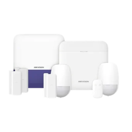 (AX PRO) KIT de Alarma AX PRO / Incluye: 1 Hub con batería de respaldo/ 2 Sensores PIR / 3 Contactos Magnéticos mini / 1 Control Remoto / 1 Sirena Inalambrica Exterior /1 Teclado Inalámbrico / WiFi / Compatible con Hik-Connect P2P