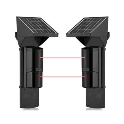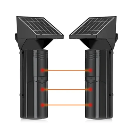 Detector fotoelectrico con celda solar ; DE 2 RAYOS; alcance exterior 60 m / interior 120 m, 4 frecuencias / Para ambientes donde no hay electricidad