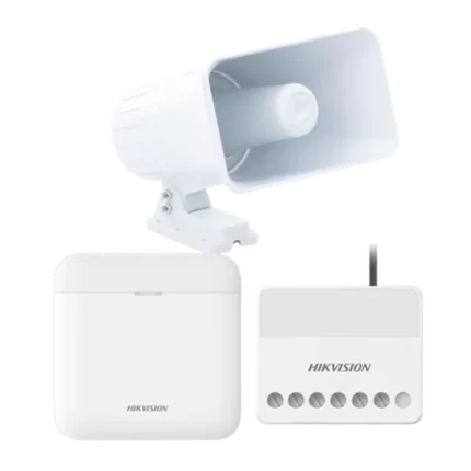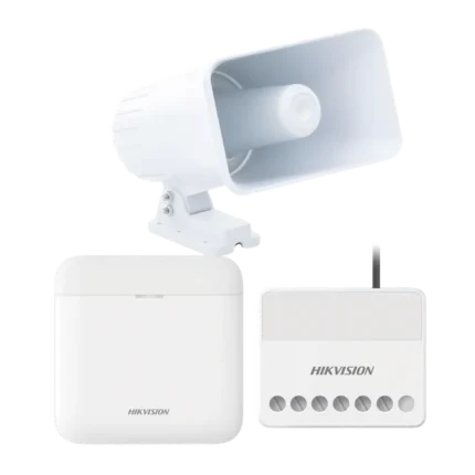(AXPRO) KIT de alarma AX PRO con sirena cableada 30W / Incluye: 1 Hub con Batería de respaldo / 1 Sirena Cableada de 30 Watts IP65 / 1 Relevador Inalámbrico 0 a 36 VCC / Compatible con Hik-Connect P2P