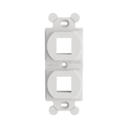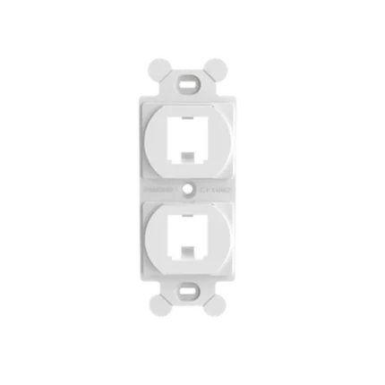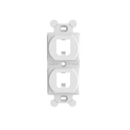 Marco de Módulo Dúplex, Para Placas Frontales Estándar GFCI, Acepta 2 Módulos Mini-Com, Color Blanco