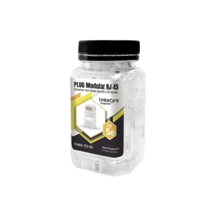 Bote con 100 Piezas de Plug Modular RJ45 Cat5e sin blindaje, chapado de oro a 30 micras para durabilidad extrema