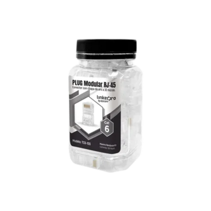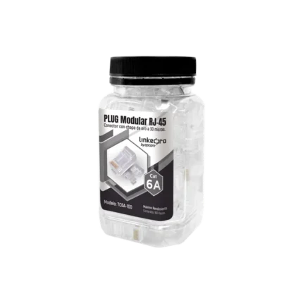 Bote con 100 Piezas de Plug Modular RJ45 Cat6A chapado de oro a 30 micras para durabilidad extrema