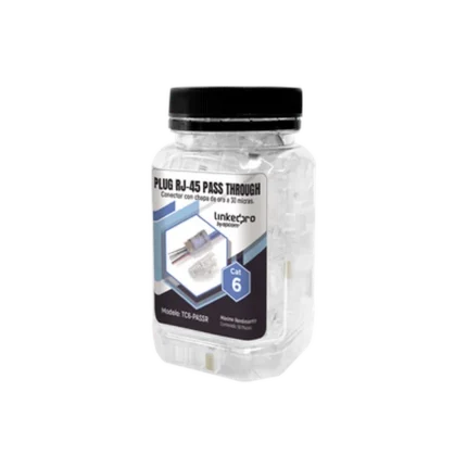 Bote con 100 Plugs Pass through RJ45 Cat6 sin blindaje, chapado de oro a 30 micras para durabilidad extrema