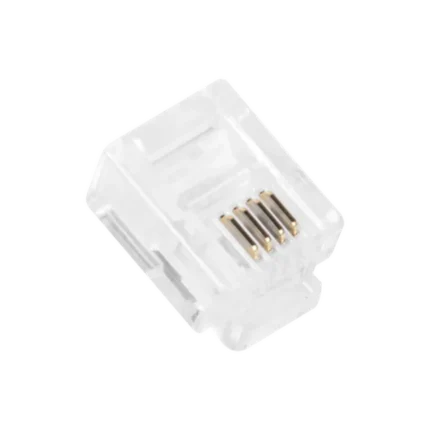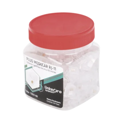 Bote con 100 piezas de plug modular tipo RJ11 de 4 contactos chapado de oro a 50 micras