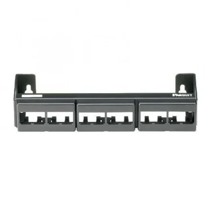 Panel de Parcheo Modular (Sin Conectores), de 12 Puertos Mini-Com, Instalación en Pared con Montaje Incluido, Color Negro