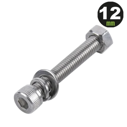1 Tornillo Allen Milimétrico de Acero Inoxidable M8-1.25 x 12/ Con 1 Tuerca, 1 Arandela de Presión y 1 Plana / Para Montajes de Módulos Foto Voltaicos .