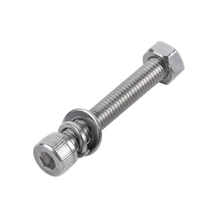1 Tornillo Allen Milimétrico de Acero Inoxidable M8-1.25 x 40/ Con 1 Tuerca, 1 Arandela de Presión y 1 Plana / Para Montajes de Módulos Foto Voltaicos .