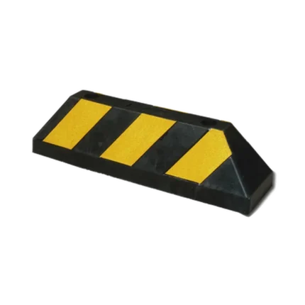 Tope D/ Estacionamiento Vehicular / Hule Reciclado / 55cm / Color Negro con Franjas Amarillas / Resistente y Antideslizante.