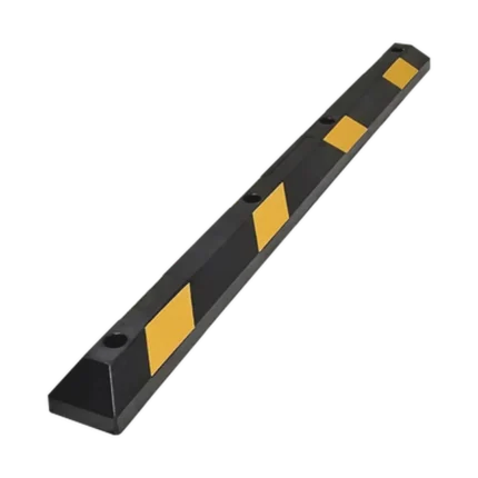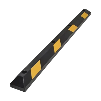 Tope D/ Estacionamiento Vehicular / Hule Reciclado / 55cm / Color Negro con Franjas Amarillas / Resistente y Antideslizante.