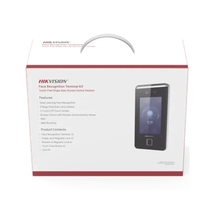 Kit de Control de Acceso TODO INCLUIDO con Lector de Rostros, QRs , Tarjetas y Huellas / 3,000 Rostros / Compatible con App Hik-Connect / Videoportero / Incluye Electroimán Botón de Salida y Montajes Z y L para imán / HIK-IA
