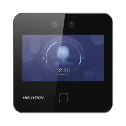 Terminal Facial Min Moe con LECTOR DE HUELLAS y Tarjetas MIFARE / 3000 Rostros / 3000 Huellas / Pantalla 4.5″ / Administrable en la Nube con Hik-Connect Teams / Exterior IP65 / PoE / WiFi / HIK-IA