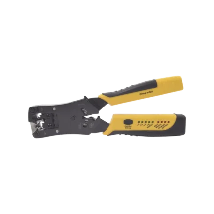 Pinza multifuncional Pelacables, con terminal de pestaña, prensado automático de color amarillo.