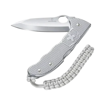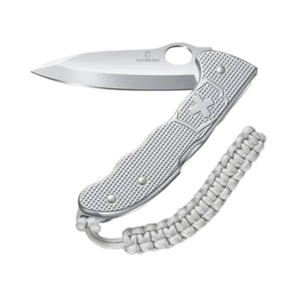 Navaja Victorinox Hunter con Cachas Alox Acanaladas y Hoja a una Mano. Con Colgante Paracord Plateado.