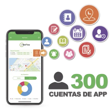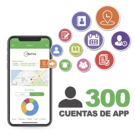 Licencia para realizar checadas de asistencia desde Smartphone (APP) con envío de fotografía y ubicación por GPS / Compatible con BIOTIMEPRO / Licencia para 300 usuario