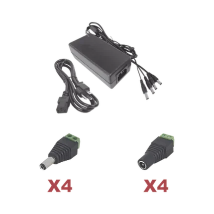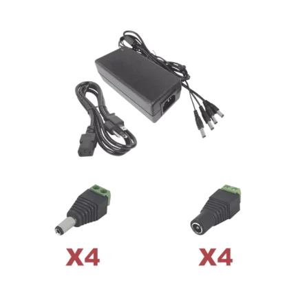 Kit con fuente EPCOM POWER LINE con salida de 12 Vcc a 5 Amper con 4 salidas / Incluye conectores JR52 y JR53