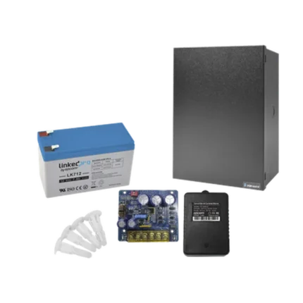Kit con fuente PLB3 con salida de 12 Vcc a 4 Amper, incluye transformador y batería de 12 V a 7 Amper