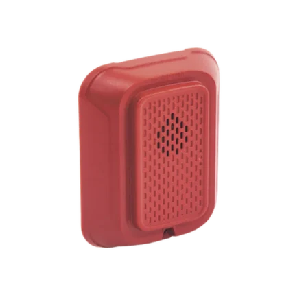 Sirena para Montaje en Pared, 12 a 24 Vcc, Color Rojo, Nuevo Diseño Moderno y Elegante y Menor Consumo de Corriente
