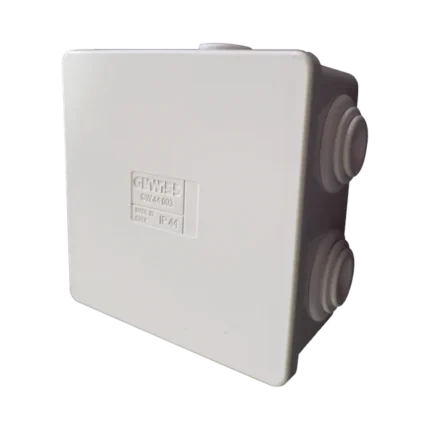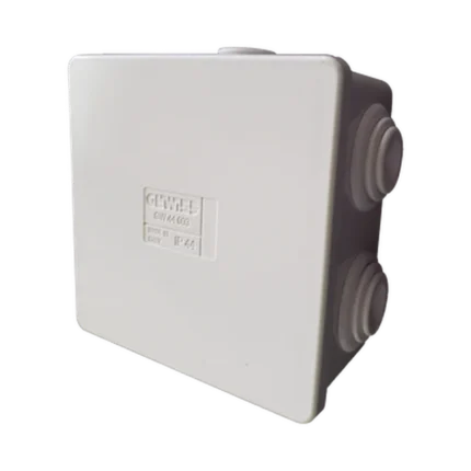 Caja de derivación de PVC Autoextinguible con 6 entradas, tapa a presión, 80x80x40 MM (Medidas internas, mayor área permisible para el cable, Para instalación al exterior (IP44)