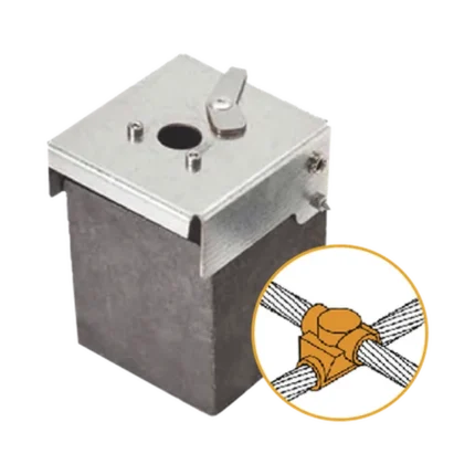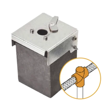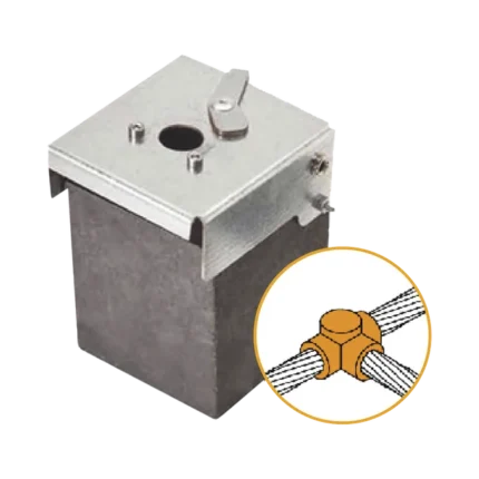 Molde de grafito vertical unión en T vertical de cable 4/0 AWG (pasante) con Pica de 5/8 in (terminal).