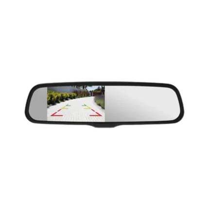 Espejo retrovisor con LCD con atenuación automática. Incluye entradas de video duales para conectar a una cámara frontal o trasera.
