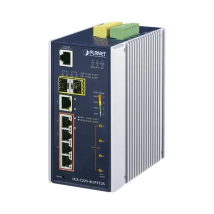 Switch Industrial PoE hasta , Ideal para temperaturas Extremas y protección contra descargas, 1 x PoE++ Port, 3 x PoE+ Ports, and 2 x SFP Uplink Ports