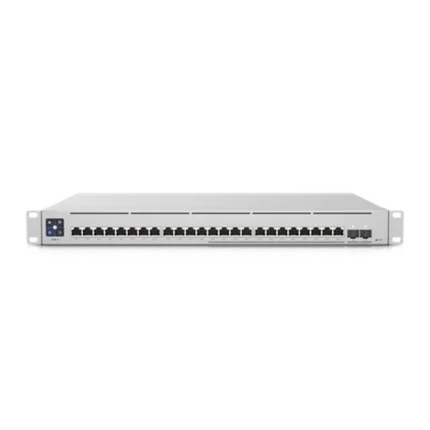 UniFi Switch Empresarial Capa 3 de 24 puertos PoE 802.3af/at (12 puertos 2.5G y 12 puertos 1G) + 2 puertos 1/10G SFP+, 400W, pantalla informativa