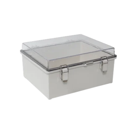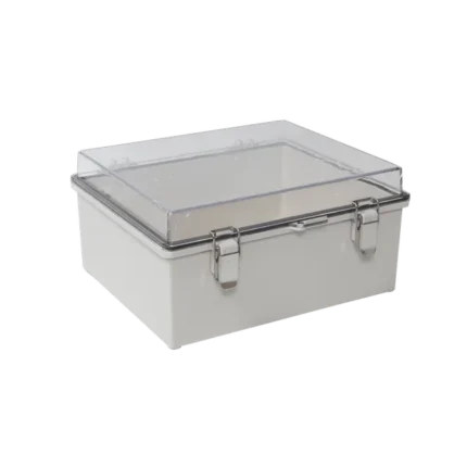 Gabinete Plástico ABS, Puerta Transparente, Uso en Intemperie IP66 (170 x 220 x 110 mm) Cierre por Broches Inoxidables y Permite Cerrado por Candado y Llave (Perno 5mm) No Incluido