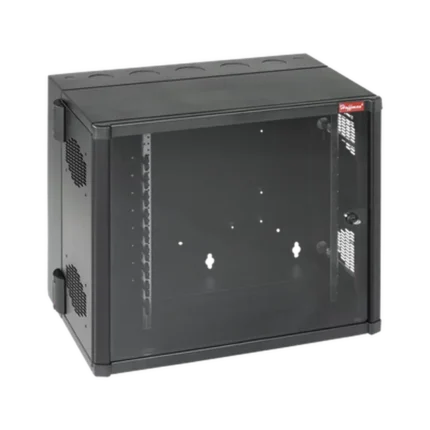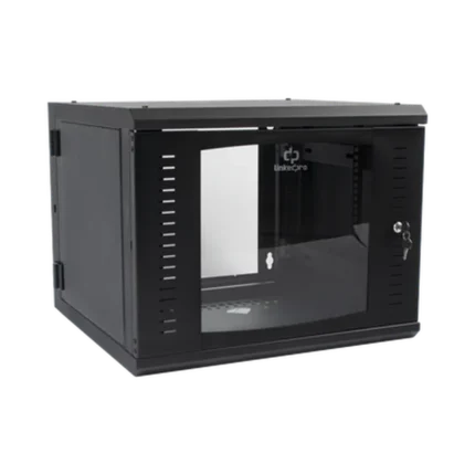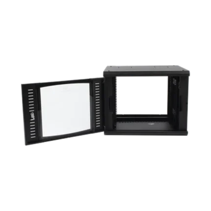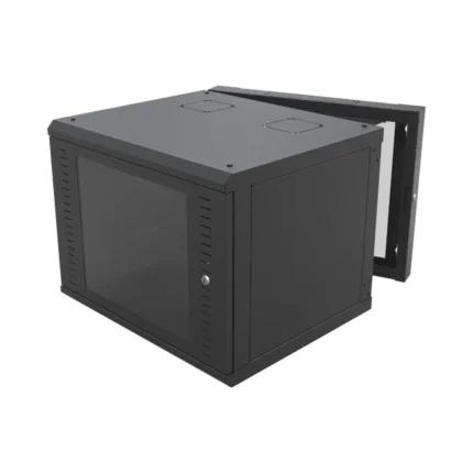 Gabinete Abatible de Pared (Con Marco Trasero) con Rack 19″ de 9 Unidades. Ventana de Cristal Templado.