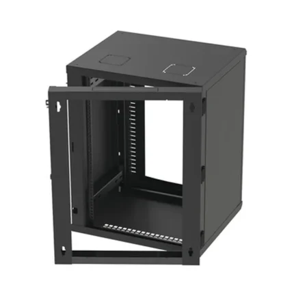 Gabinete Abatible de Pared (Con Marco Trasero) con Rack 19″ de 12 Unidades. Ventana de Cristal Templado.