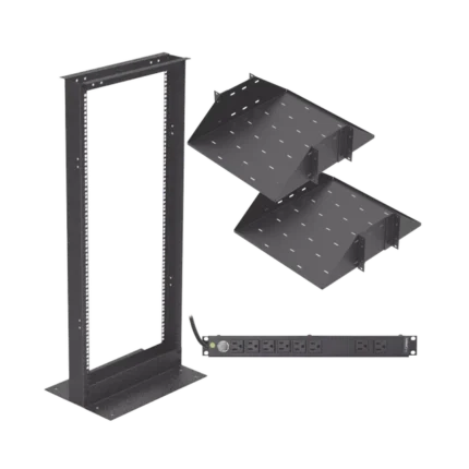 Kit de Rack Estándar 19″, 24 UR con 2 Charolas y PDU (8 tomas). Ideal para UPS y Servidores tipo Torre.