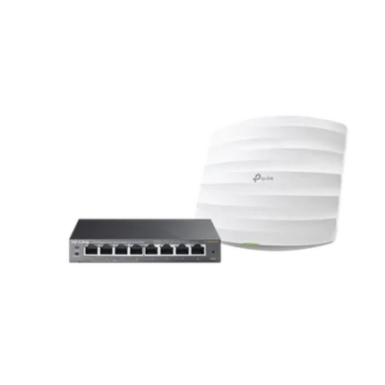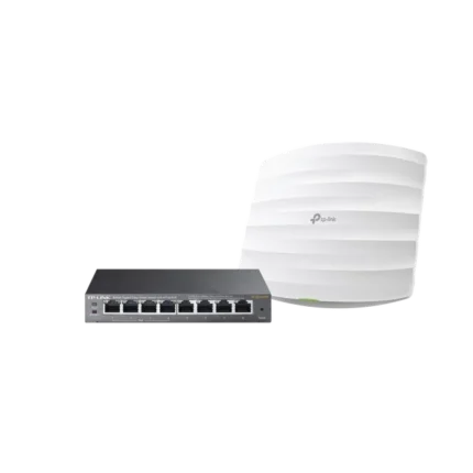 Kit de access point EAP245 y switch PoE TL-SG108PE, doble banda AC, hasta 1750 Mbps, 1 puerto Gigabit