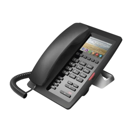 (H5 Color Negro) Teléfono IP Hotelero de gama alta, pantalla LCD de 3.5 pulgadas a color, 6 teclas programables para servicio rápido (Hotline), PoE