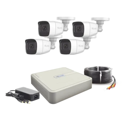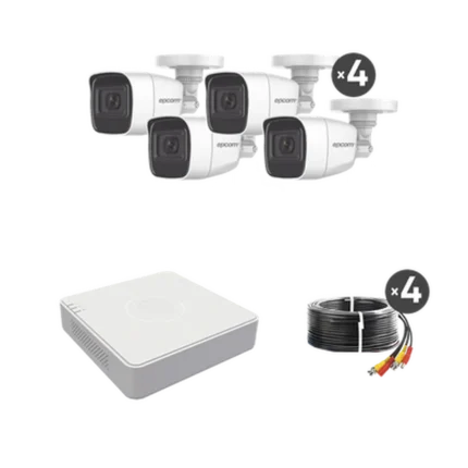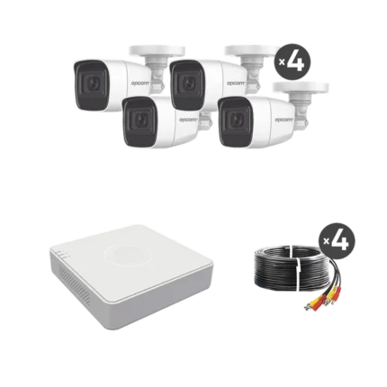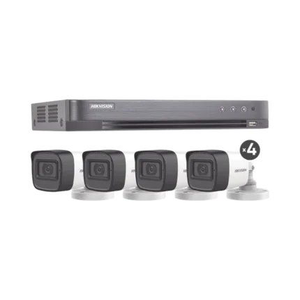 (MICRÓFONO INTEGRADO) KIT TURBOHD 5 Megapixel / DVR 4 Canales / 4 Cámaras Bala con Micrófono Integrado (exterior 2.8 mm) / Fuente de Poder / Accesorios de Instalación
