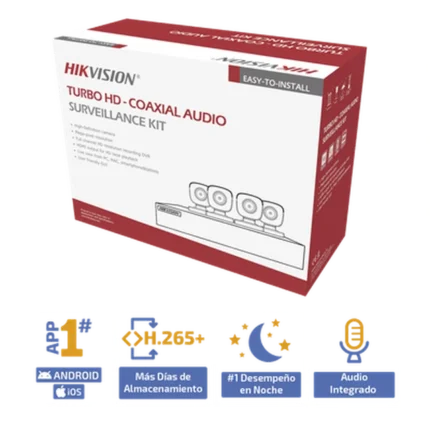 (MICRÓFONO Integrado) Kit TurboHD 1080p Lite / DVR 4 canales / Audio por Coaxitron / 4 Cámaras Bala de Policarbonato con Micrófono Integrado