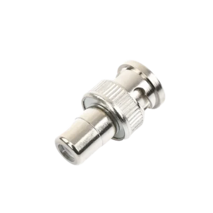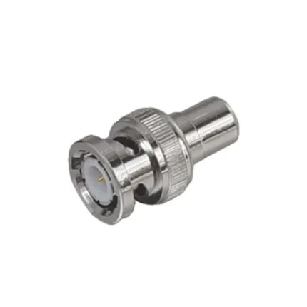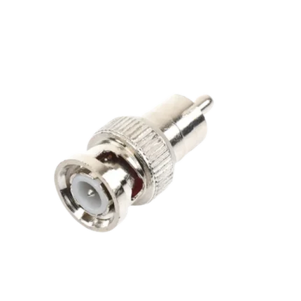 Adaptador en línea para 75 Ohm, de conector BNC macho a RCA macho en aplicaciones de Audio-Video para cámaras, monitores y DVR´s.