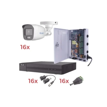 Kit TurboHD 1080p Lite / DVR 16 Canales / 16 Cámaras Bala Exterior ( 2.8mm) con ColorVu + Micrófono Integado / Transceptores / Conectores / Fuente de Poder Profesional