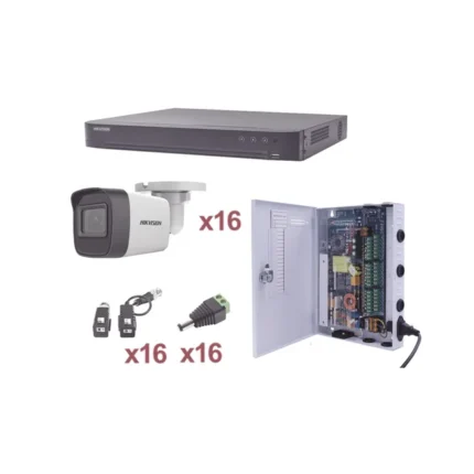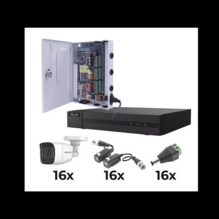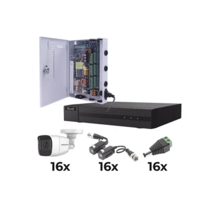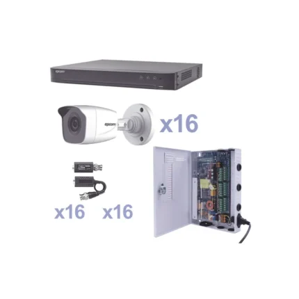 KIT TurboHD 1080p / DVR 16 Canales / 16 Cámaras Bala (exterior 2.8 mm) / Transceptores / Conectores / Fuente de Poder Profesional