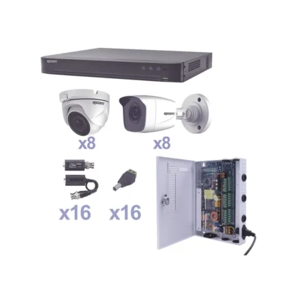 KIT TurboHD 1080p / DVR 16 Canales / 16 Cámaras Eyeball (exterior 2.8 mm) / Transceptores / Conectores / Fuente de Poder Profesional
