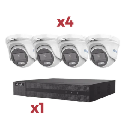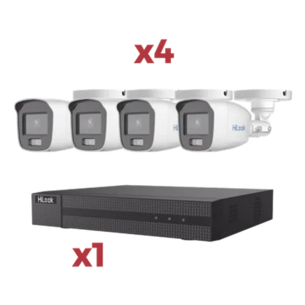 [Kit] DVR 4 Canales TurboHD + 1 Canal IP / 2 Megapixel (1080pLite) / AcuSense Lite / Audio por coaxitron / 1 Bahia de disco duro / 4 Cámaras Metalicas / 2 Megapixel tipo turret / ColorVu Lite + Microfono Integrado