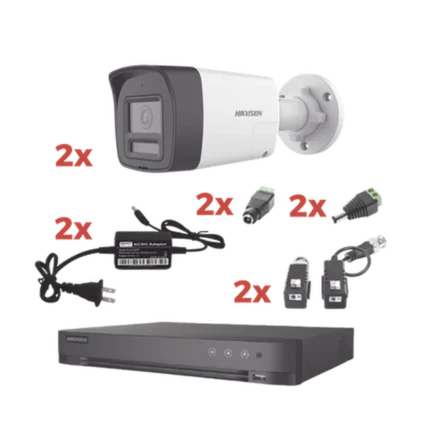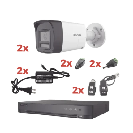 Kit Audio Bidireccional TurboHD 1080p / DVR 4 Canales / 2 Cámaras Bala (Exterior) con Bocina y Microfóno Integrado / 2 Fuentes de Poder / Accesorios
