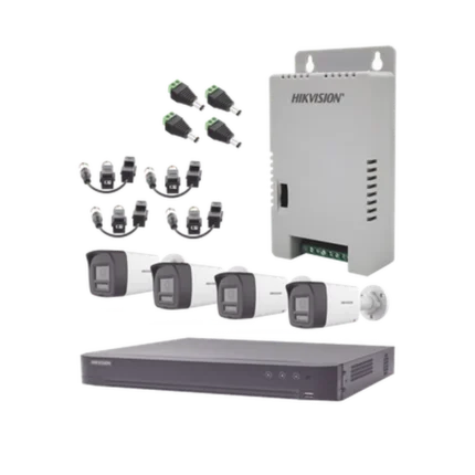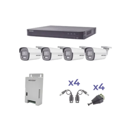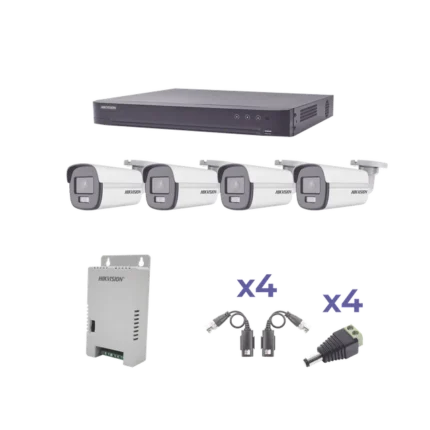 KIT COLORVU TURBOHD 1080p / DVR 4 Canales / 4 Cámaras Bala (exterior) lente 2.8mm / Fuente de poder profesional / Transceptores de video y Accesorios de corriente