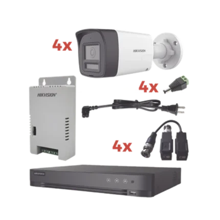 Kit Audio Bidireccional TurboHD 4K-3K / DVR 4 Canales 4K / 4 Cámaras Bala (Exterior) con Bocina y Microfóno Integrado 3K / 1 Fuentes de Poder / Accesorios
