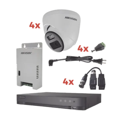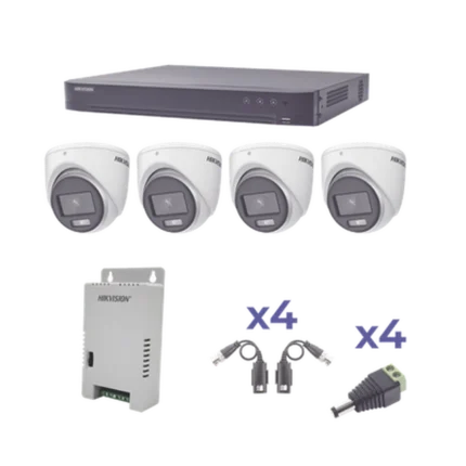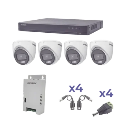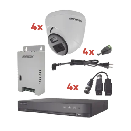 KIT COLORVU TURBOHD 1080p / DVR 4 Canales / 4 Cámaras eyeball (exterior) lente 2.8mm / Fuente de poder profesional / Transceptores de video y Accesorios de corriente