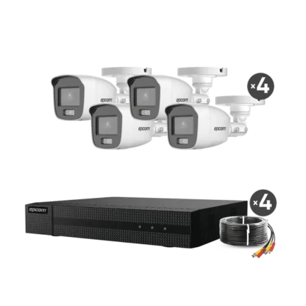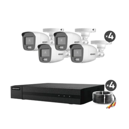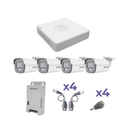 KIT COLORVU TURBOHD 1080p Lite / DVR 4 Canales / 4 Cámaras Bala (exterior 2.8 mm) / Transceptores / Conectores / Fuente de Poder Profesional