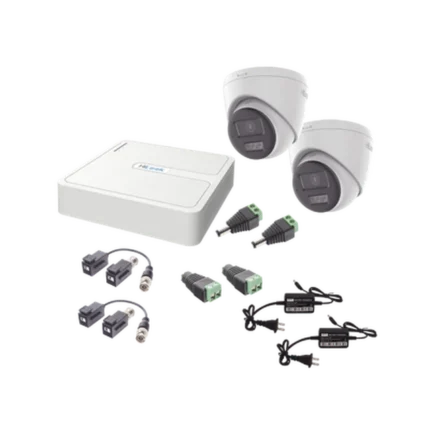 Kit HiLook Audio Bidireccional TurboHD 1080p / DVR 4 Canales / 2 Cámaras Turret (Exterior) con Bocina y Microfóno Integrado / 2 Fuentes de Poder / Accesorios