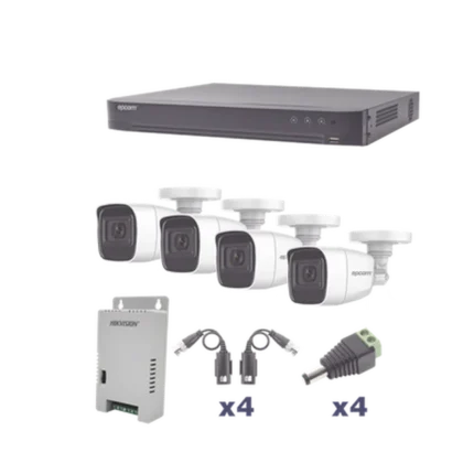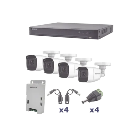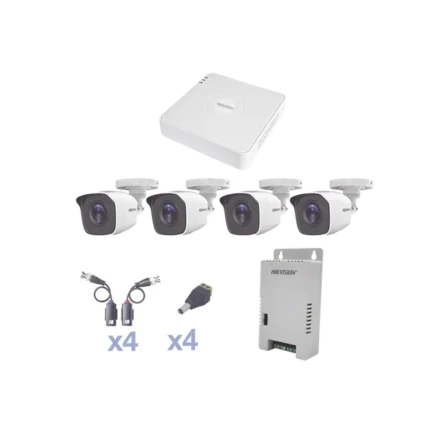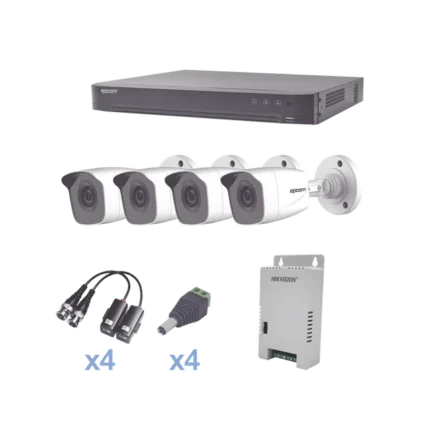 KIT TurboHD 1080p / DVR 4 canales / 4 Cámaras Bala de Metal / H.265+ / 1 Fuente de Poder Profesional / Accesorios de Instalación