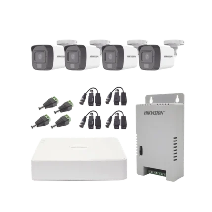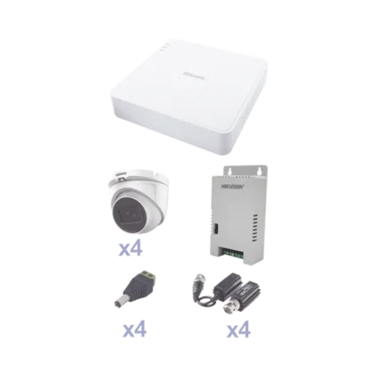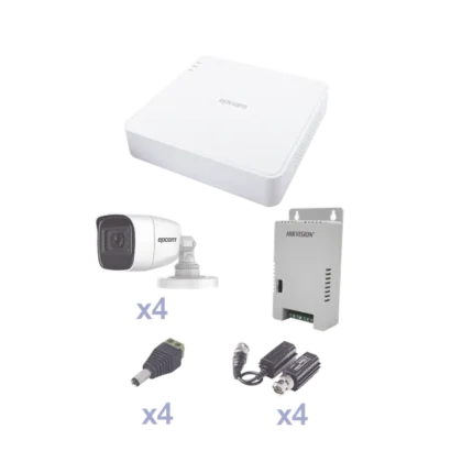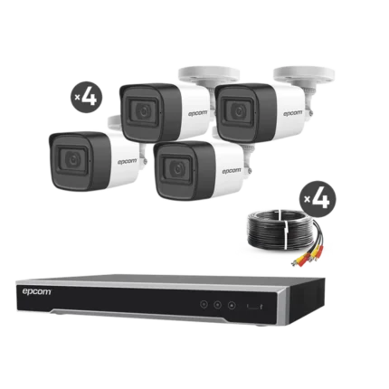 Kit TURBOHD 1080p / DVR 4 Canales / 4 Cámaras con Micrófono Integrado y 101° Visión / Luz Blanca + IR Visión Nocturna / Transceptores / Conectores / Fuente de Poder Profesional Compacta