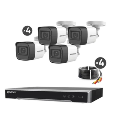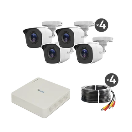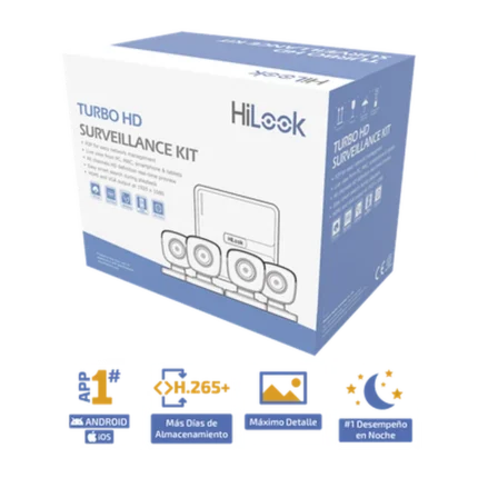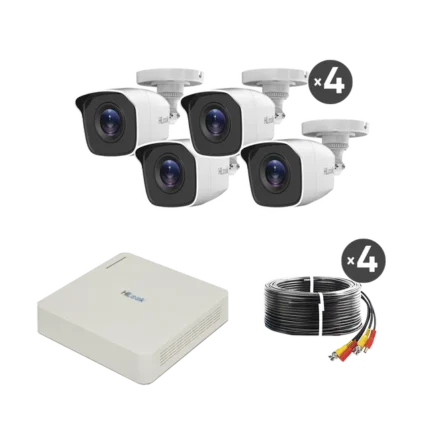 Kit TurboHD 720p / DVR 4 canales / 4 Cámaras Bala de Metal / 4 Cables 18 Mts / H.265+ / 1 Fuente de Poder Profesional / Accesorios de Instalación
